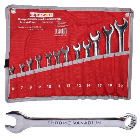 Komplet kluczy płasko-oczkowych SUPERWORK 12szt. 6-22mm
